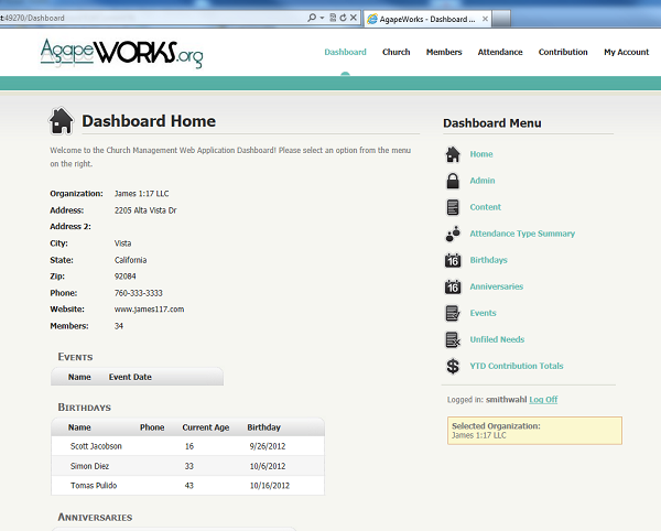 The dashboard brings together everything that you need to know into one page. When you login you’ll see an instant summary of your active needs and all events, birthdays and anniversaries in the next 30 days. Every church member that has an account will be able to see what’s going on at the church at a glance. |