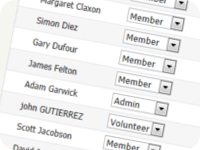 View all of your members and users in one place. From here you can set each member’s status on the site from easy-to-use dropdown menus. |